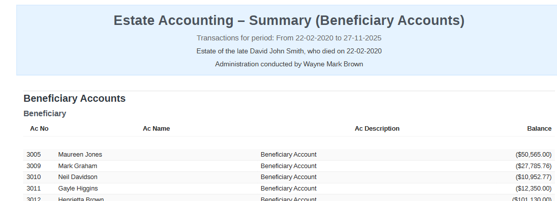 Handles simple or complex estates- any number of beneficiaries and combination of legacies, specific gifts and residuary gifts.
