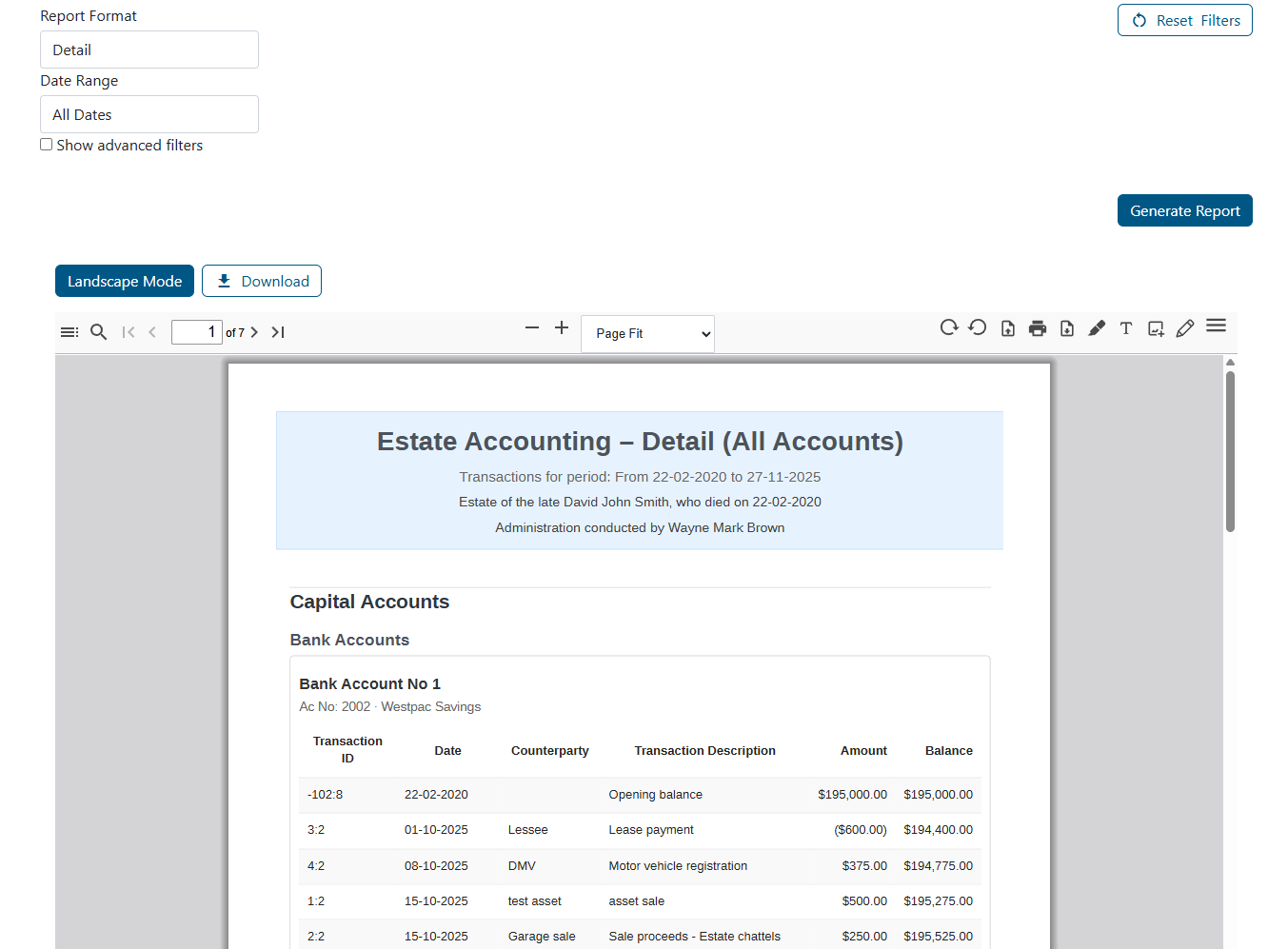 Record estate assets, enter transactions, and calculate every beneficiary's share.